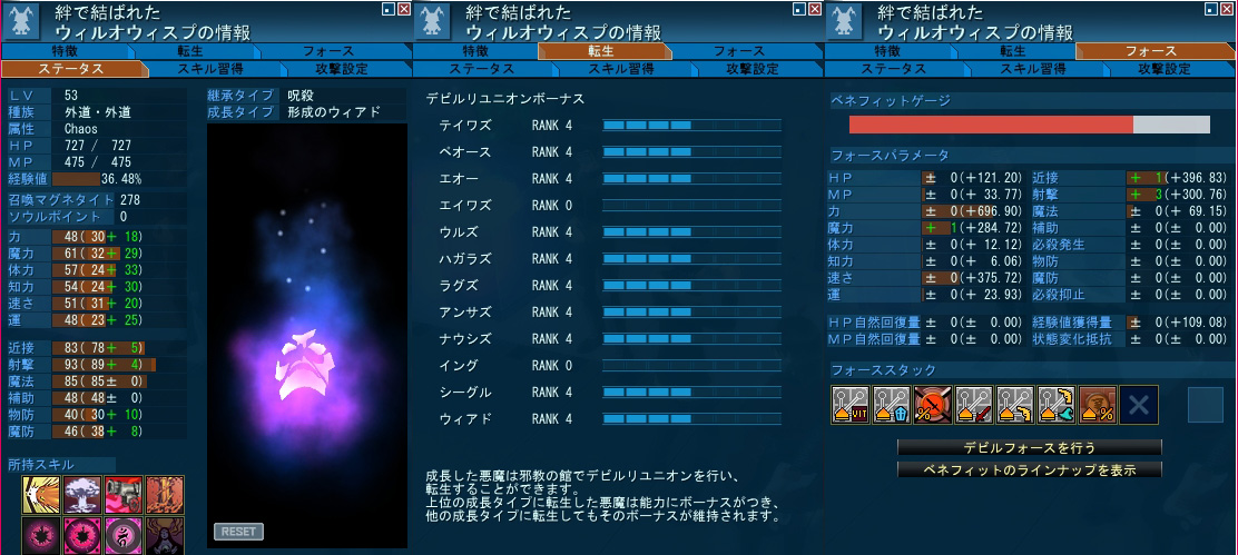 まずは只今育ててるツッキーの本仲魔のウィル男さん