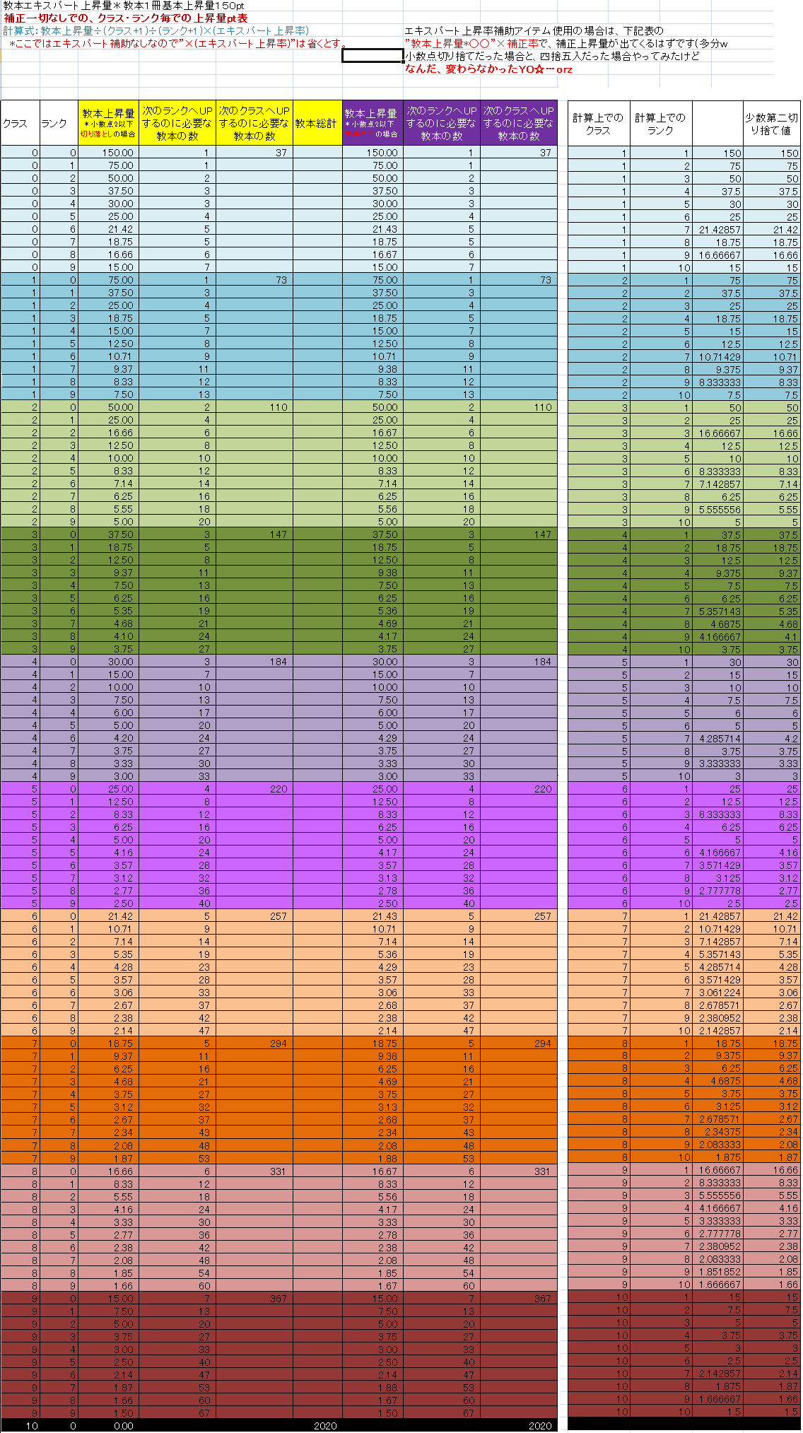▽教本エキスパート上昇量早見表▽